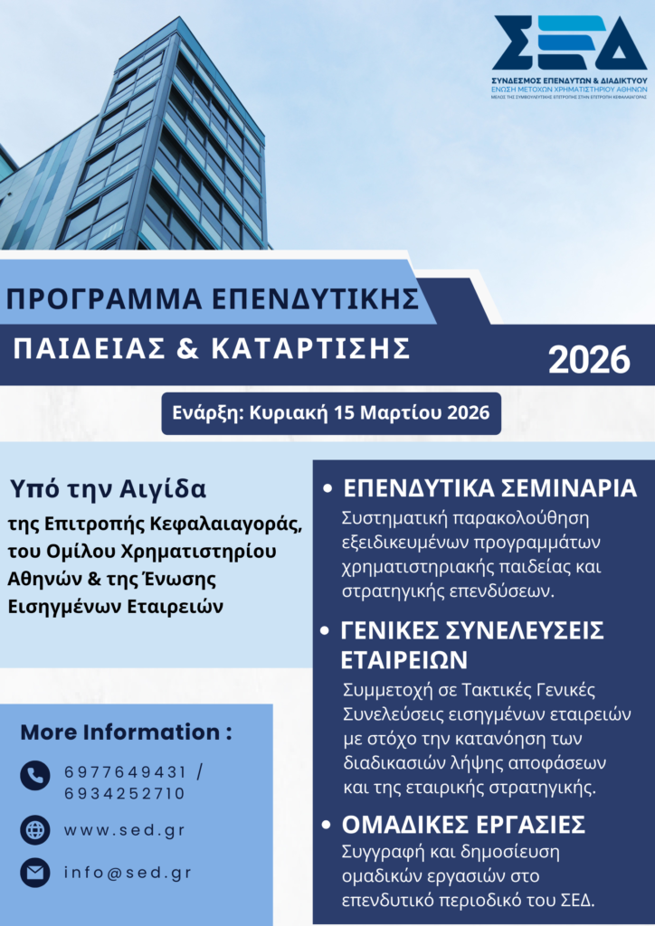 O Σύνδεσμος Επενδυτών & Διαδικτύου-(ΣΕΔ), είναι αναγνωρισμένo Σωματείο μη κερδοσκοπικού χαρακτήρα, το οποίο σύμφωνα με το νόμο 3756/2009, άρθρο 10, παρ.4, ΦΕΚ 53 Α’ και 3763/2009, άρθρο 27, παρ.2, ΦΕΚ 80 Α’, συμμετέχει στη Συμβουλευτική Επιτροπή της Επιτροπής Κεφαλαιαγοράς, σαν εκπρόσωπος των Ιδιωτών Επενδυτών στη χώρα μας.