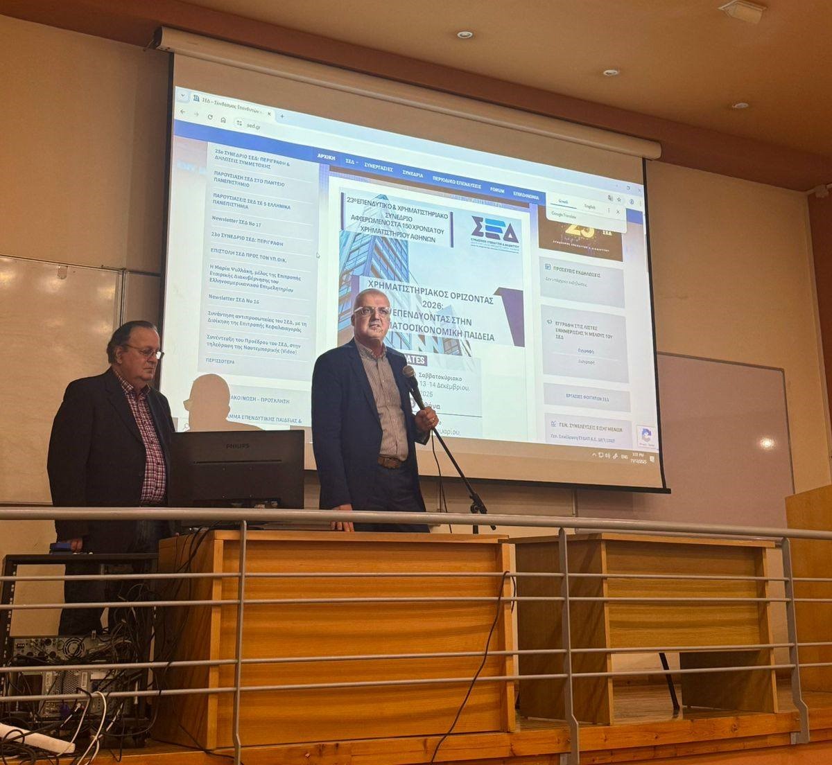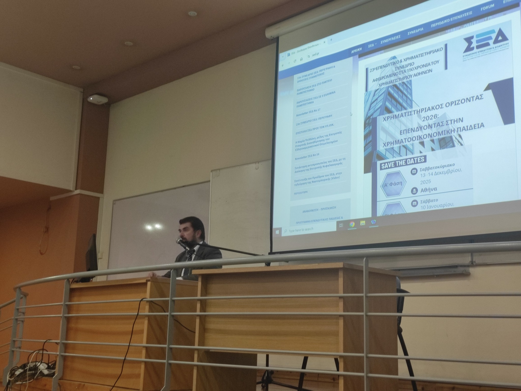 Την Πέμπτη 13 Νοεμβρίου, έγινε παρουσίαση των δράσεων του ΣΕΔ στο ΠΑΝΕΠΙΣΤΗΜΙΟ ΠΕΙΡΑΙΩΣ, Τμήμα Χρηματοοικονομικής & Τραπεζικής Διοικητικής, σε συνεργασία με τον καθηγητή κ. Δημήτρη Κυριαζή, με τίτλο: